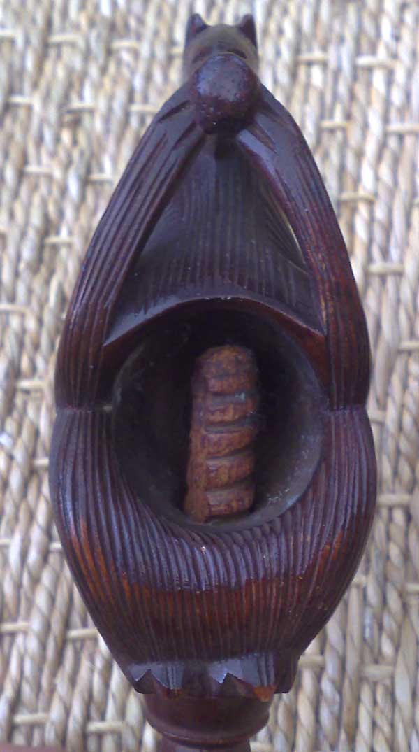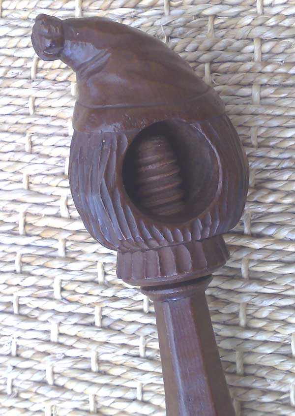 pot. This is a percussion nutcracker - the nut is inserted into his