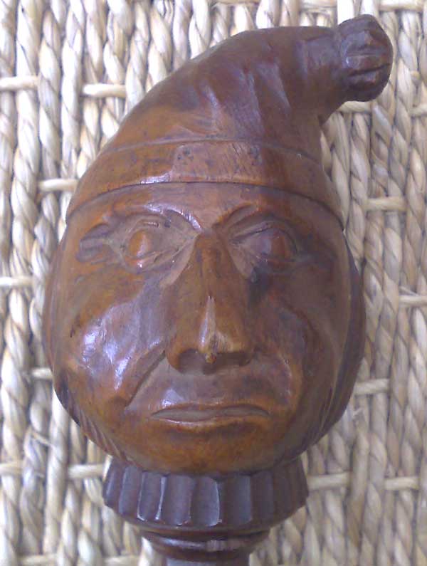 A French screw nutcracker depicting a man wearing a tassled hat.