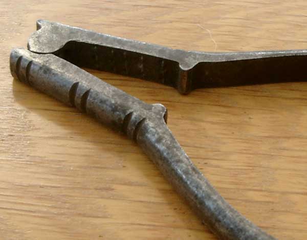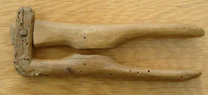 Finely-carved yew wood screw nutcracker, Swiss or French. The carved